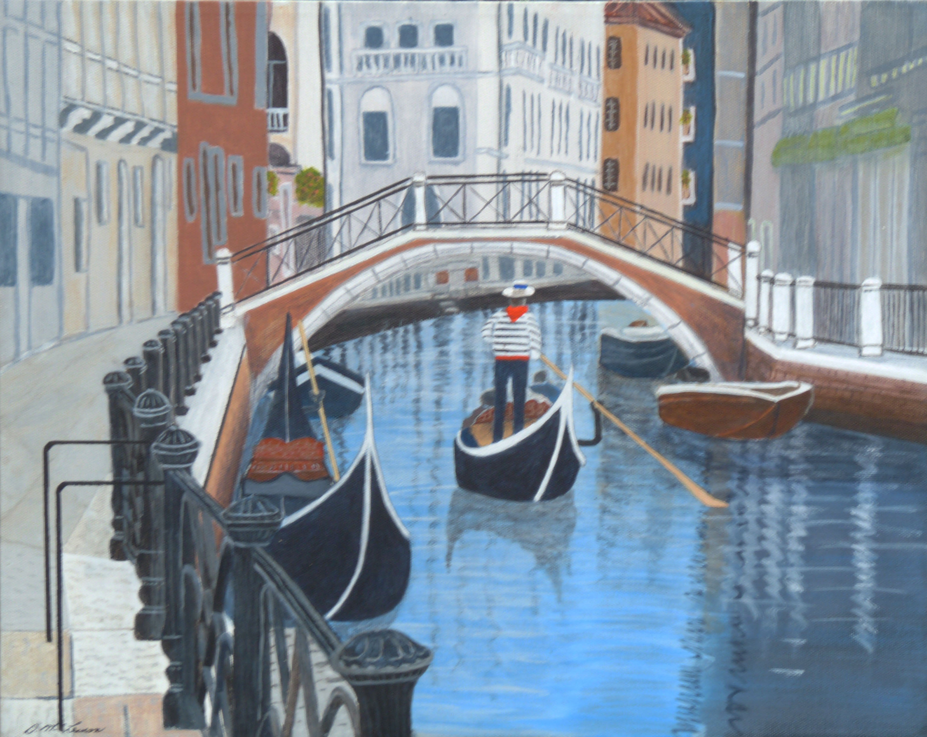 I’ve retired from a career in social services, have two grown children and live with my husband and two standard poodles in Victoria, B.C. All of my artwork is done from photographs I’ve taken, mostly when I was on vacation, so I’ve called my show Holiday Dreams.