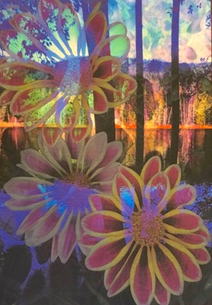 Dale, an artist living in Sidney, BC, has been involved in the Textile Arts for the past 40 years exhibiting art quilts in Canada and USA. Inspiration comes from walks through the forest & along the shore observing and recording the patterns, colours and textures that surround us. These walks can be very mediative and bring a sense of calm, often photographing the small details and just enjoying those moments. Many new ideas are generated in workshops and study group sessions while experimenting with surface design techniques including collage, dyeing, painting, stamping, stitching and photo transfer. Recent experiments include using apps on the iPad to manipulate digital images to create a new story.