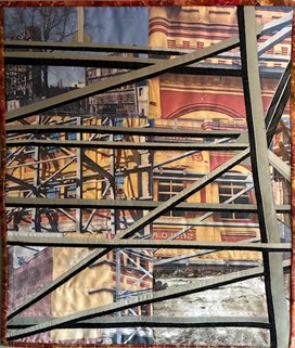 She often finds inspiration in ordinary things from daily life – people, landscapes, flowers, old vehicles and buildings. Manipulating photographic images, printing on fabric, piecing and layering images with other materials all enable the addition of depth that can add a sense of mystery. As a keen genealogist, she loves to incorporate her ancestors into her work. A layering approach is ideal for showing the effects of the passage of time on a space, something that has always intrigued her. She is most satisfied when she can look at a completed piece and wonder if there’s yet another layer of meaning hiding within.